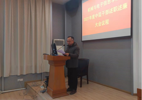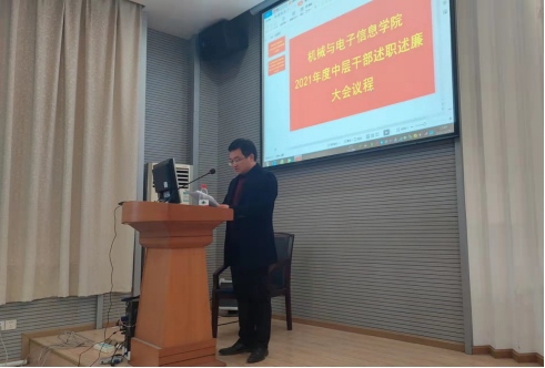 2021年12月30日,必赢71886网址登录2021年度中层干部述职述廉报告大会兼第三届教职工大会第四次会议暨工会会员大会在教二楼301顺利召开。会议由机电学院党委书记瞿祥华主持,机电学院院长丁华锋、副书记于晓舟、副院长李波、罗杰、文国军、黄田野院领导班子成员、中层干部、职工代表等100余人参加了会议。