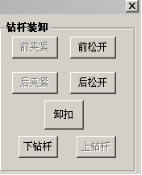 步骤5:点击钻杆装卸栏的“前夹紧”“后夹紧”,再点击“卸扣”转动卸扣油缸,使钻杆与动力头分离,点击“下钻杆”,动力头回拖,并拆下已装上的钻杆。